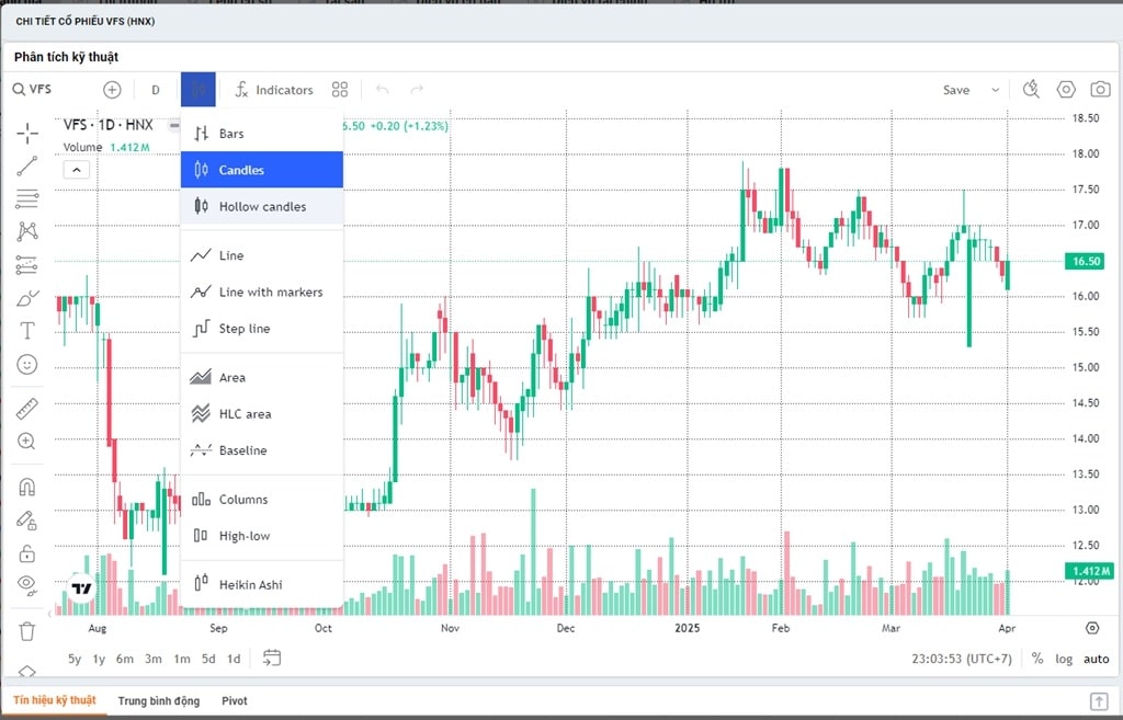 - Line Chart (Line – Alt+3): Only connects closing prices, suitable for seeing the general trend but lacks detail.