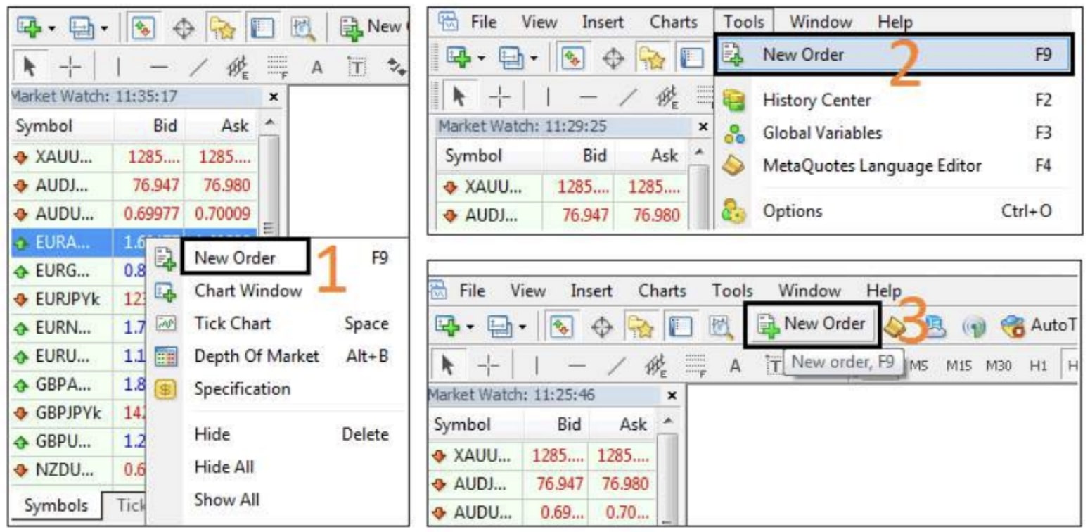 3. Thực hiện lệnh: Buy/Sell hoặc Pending Order