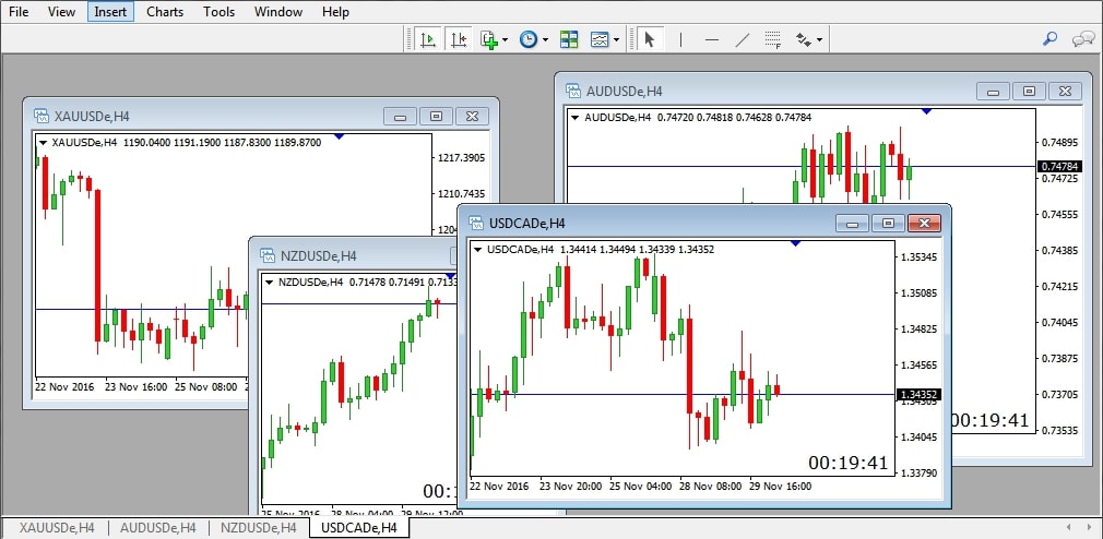 - Mở 4 biểu đồ của 4 cặp tiền khác nhau.